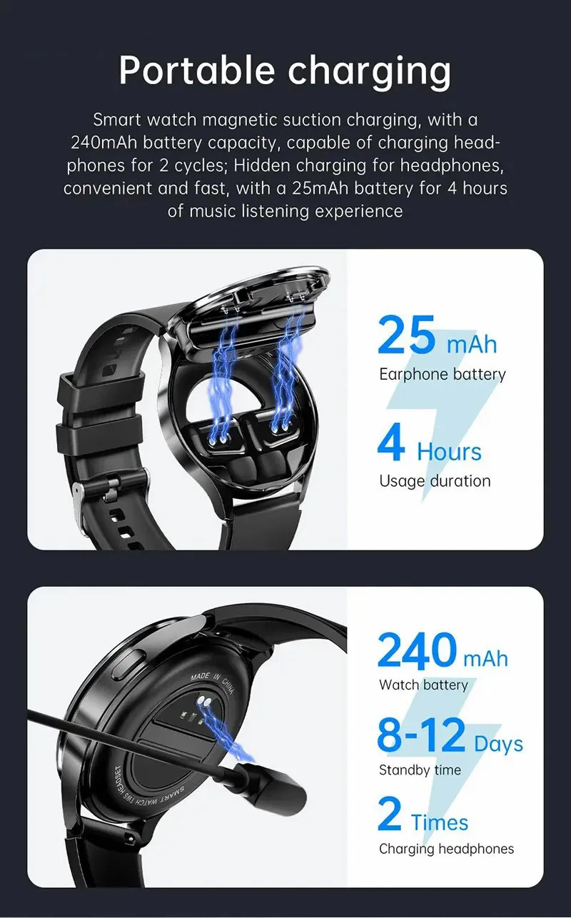 2-in-1 Smartwatch with HD Bluetooth Calling, 1.39-inch High-Definition Screen, Waterproof, and Ultra-Thin
