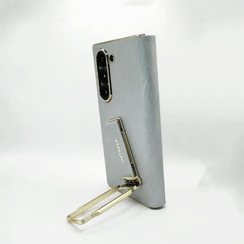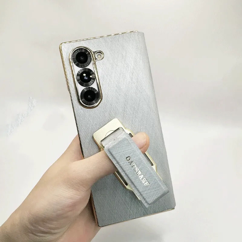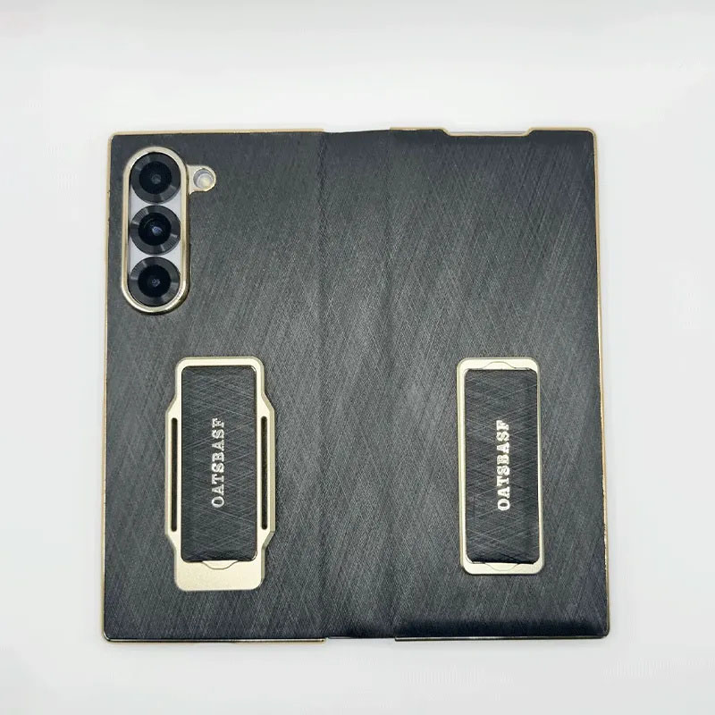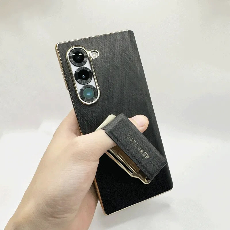 Dual-strap leather phone case for Samsung Z Fold6, featuring a 360° rotating kickstand for versatile viewing and secure grip. Stylish and functional protection for your foldable device.