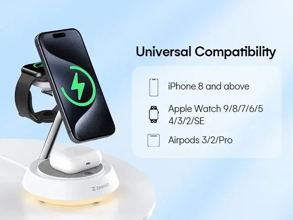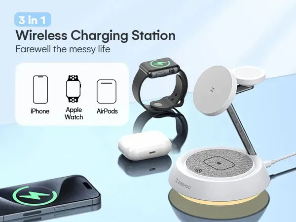 Simultaneously charge your iPhone, Apple Watch, and AirPods, bidding farewell to tangled cables.