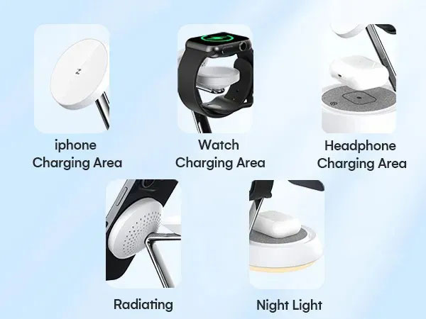 Get a close look at the charging functions of phones,watches,headphones,and night lights.
