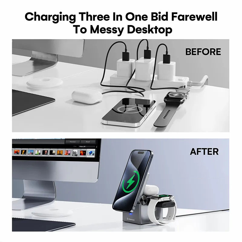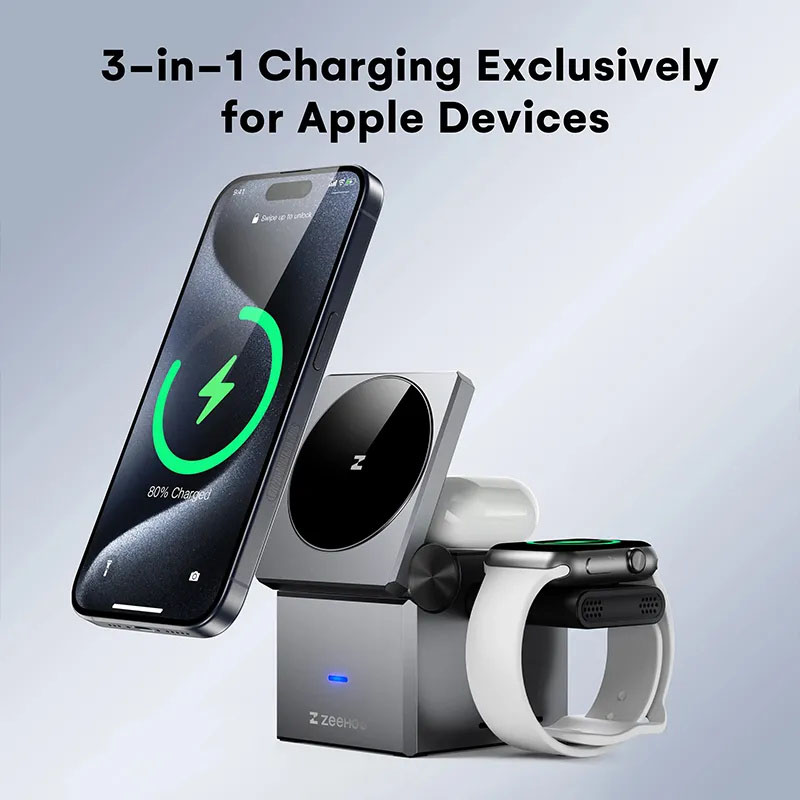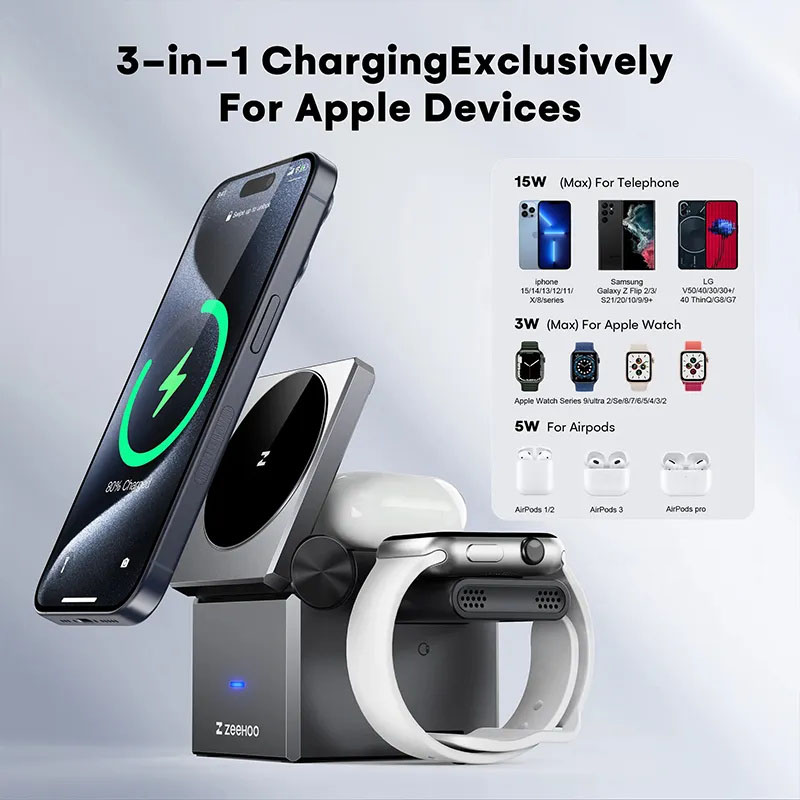 [3-in-1 Exclusively for Apple] A one-stopwireless charging solution for your iPhone, AppleWatch, and AirPods.
