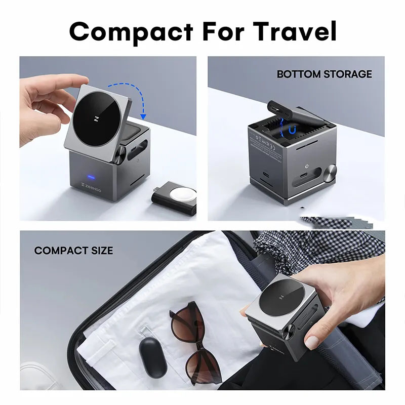 G-OUSSVE 3 in1 Wireless Charger MagCube, 15w Fast Charging for iPhone 15 Pro 14 13 12 Max/Mini/Plus,for Apple Watch9 8 7 6 5 4 3 2 SE, for AirPods Pro 3 2, Compact & Portable Wireless Charging Station, Fits with Qi2 Wireless Charging Smartphone & Earbu