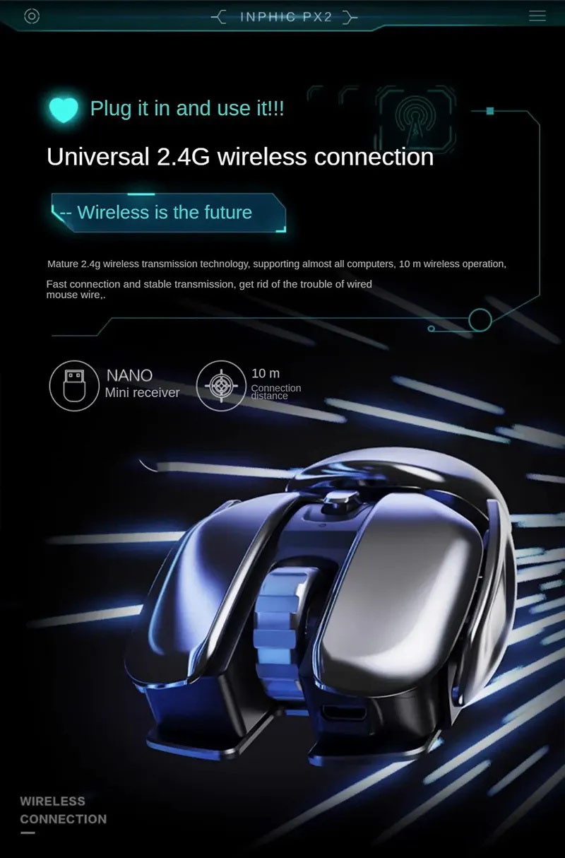 Technology design appearance is cool and full of personality. The mouse have high-sensitivity, suitable for e -sports players.