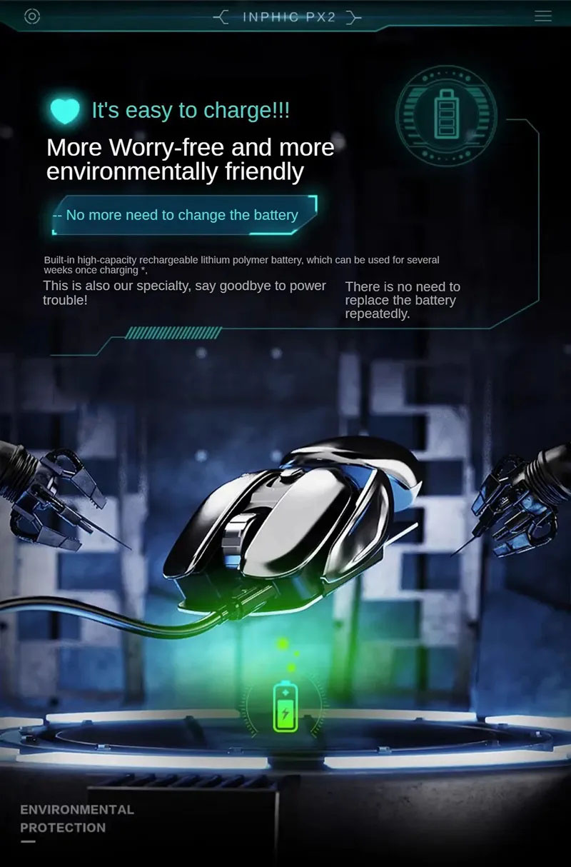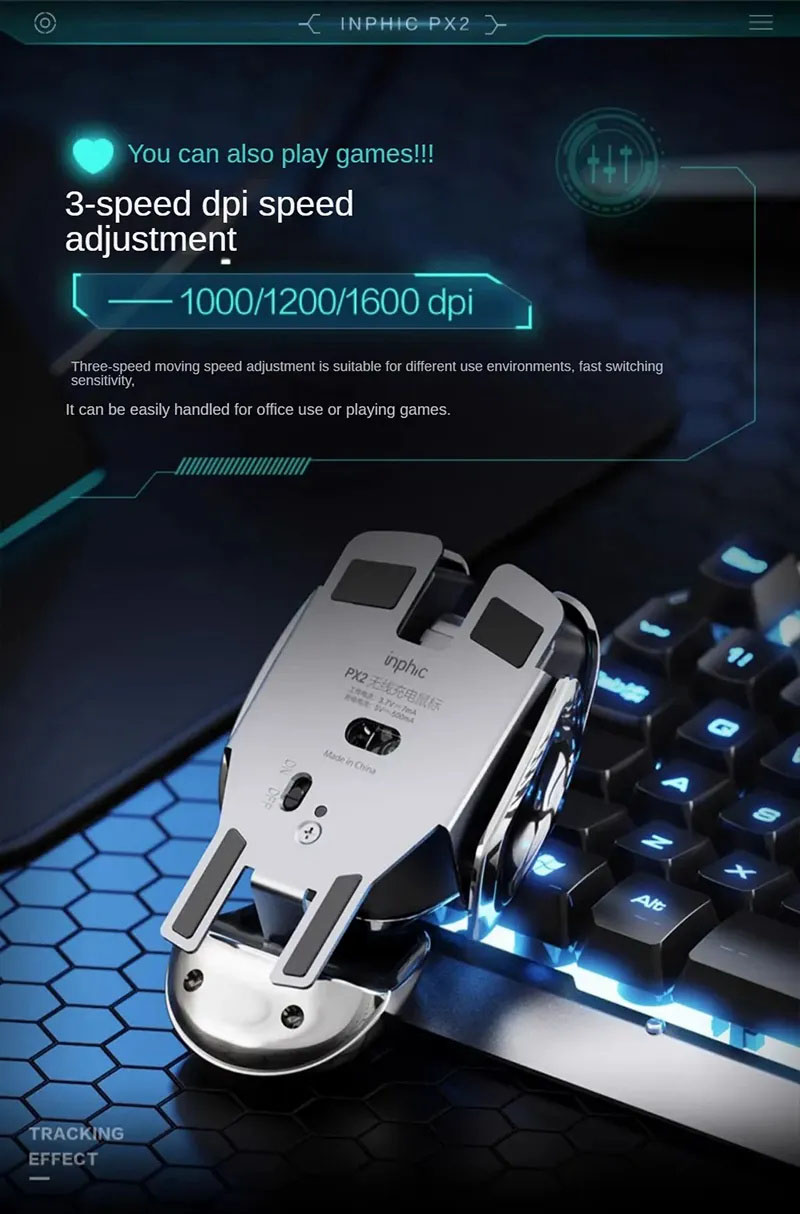 G-OUSSVE PX2 Charging Wireless Mouse with Mouse Pad, Silent and Silent Office Metal Mechanical Game, Esports Computer Laptop