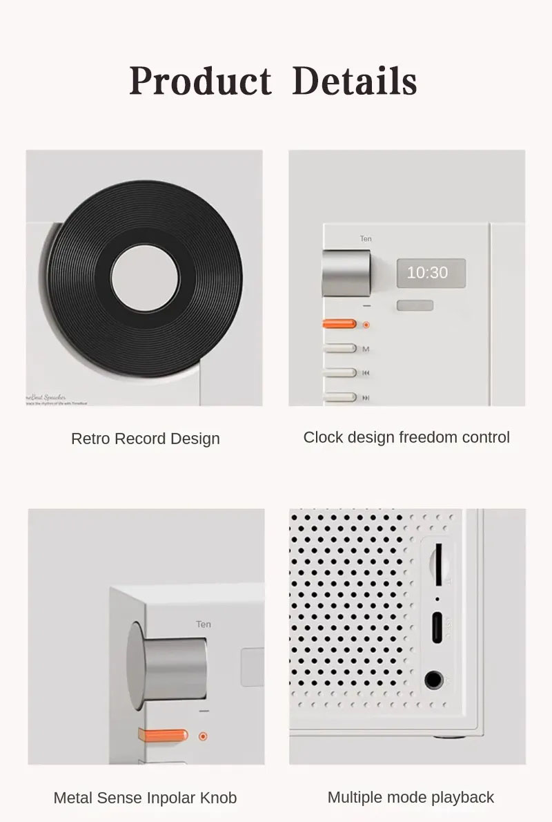 Time Bluetooth Speaker Desktop Retro Clock Speaker Subwoofer Film Rotatable Birthday Gift