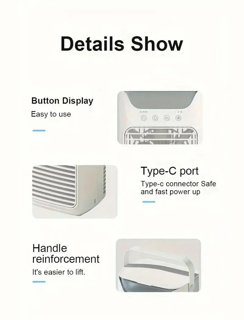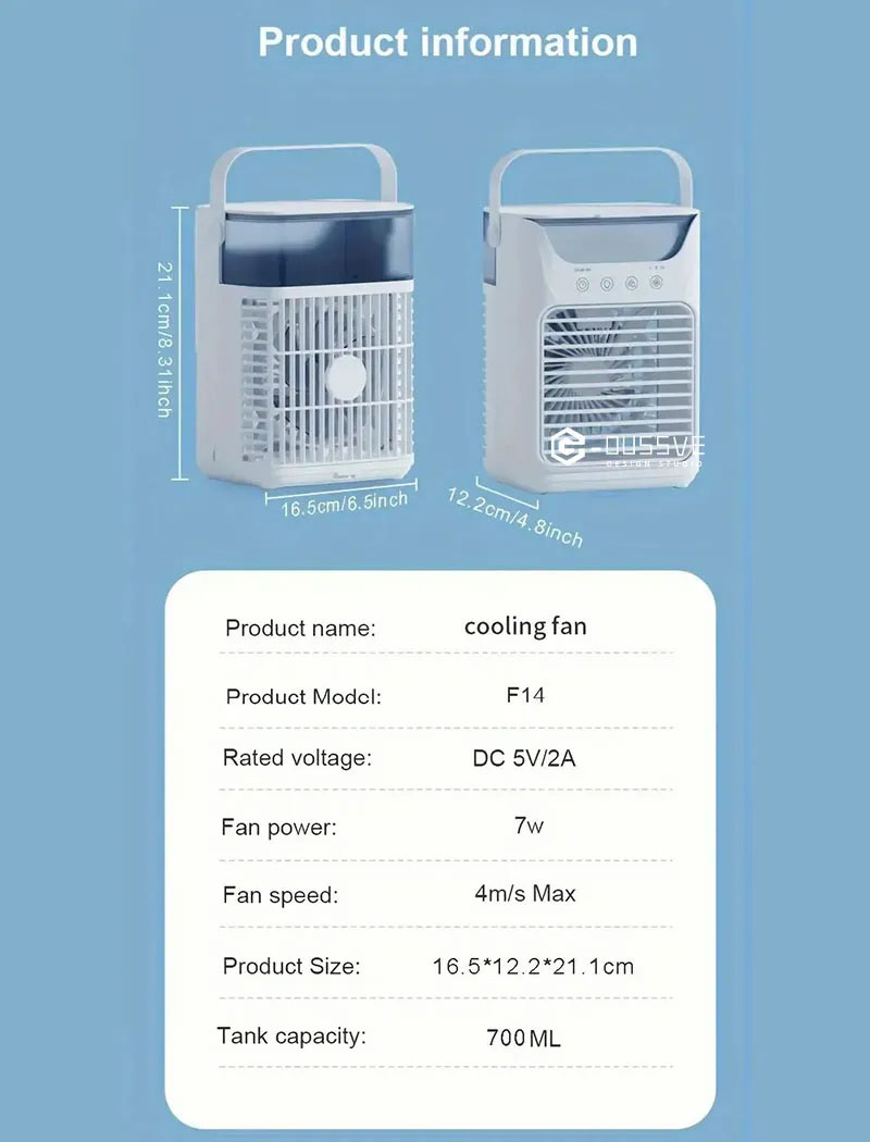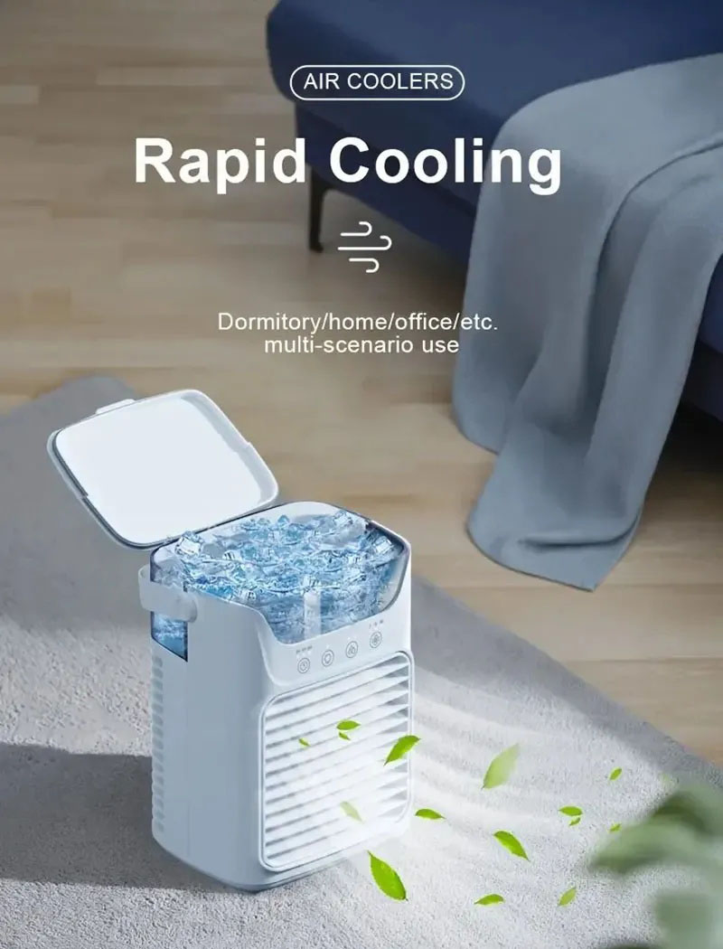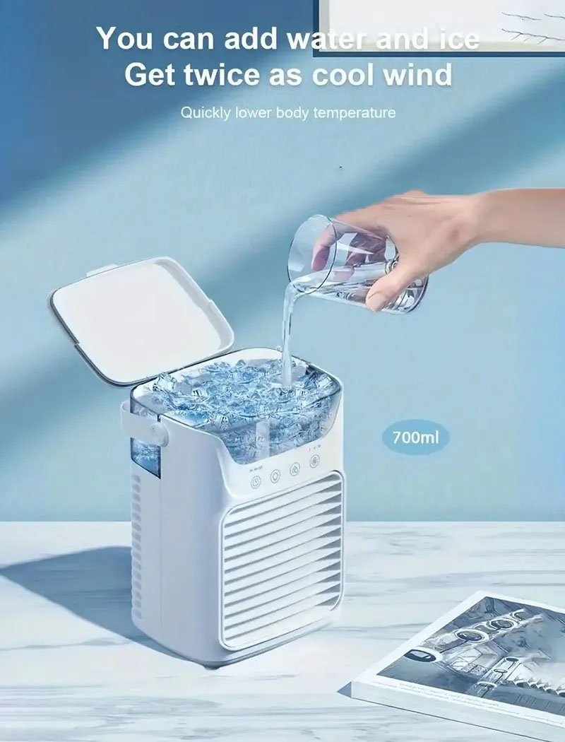 GIVBRO 1pc Portable USB Mini Air Cooler Fan, Desktop 3-in-1 Cooling Air Conditioner Fan With Water Cooled, Colorful Breathing Light And Humidifier Function For Family/Office And Outdoors Use