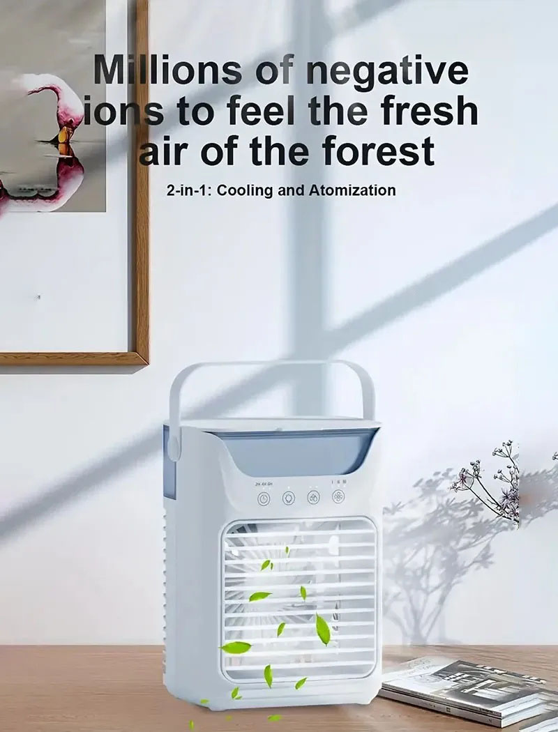 1pc Portable USB Mini Air Cooler Fan, Desktop 3-in-1 Cooling Air Conditioner Fan With Water Cooled, Colorful Breathing Light And Humidifier Function For Family/Office And Outdoors Use