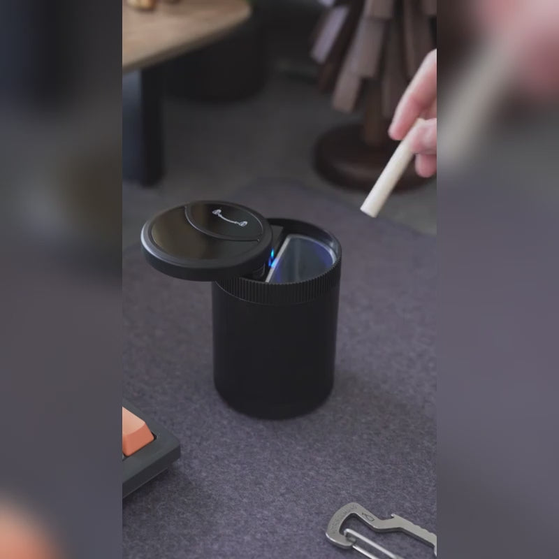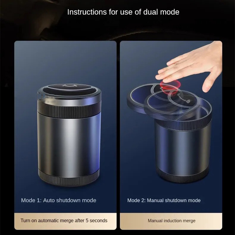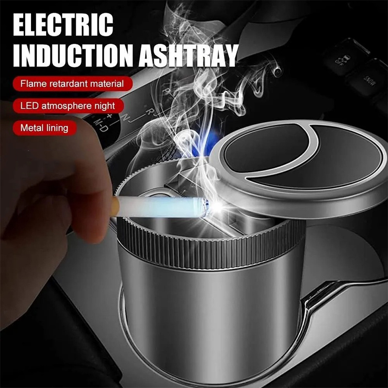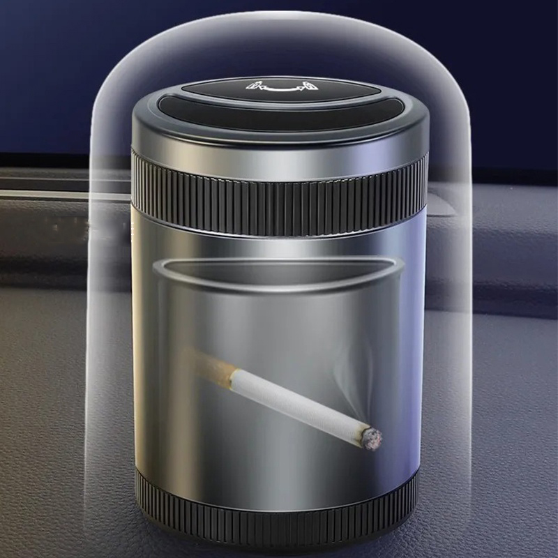 - This innovatively designed car ashtray features a convenient one-button open mechanism and an infrared smokeless technology.