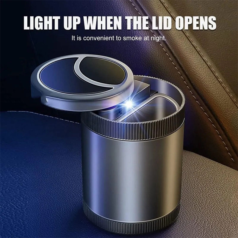 - With a built-in light, this ashtray offers easy visibility in dimly lit settings. Enjoy a smoke-free journey with this practical and stylish car accessory.