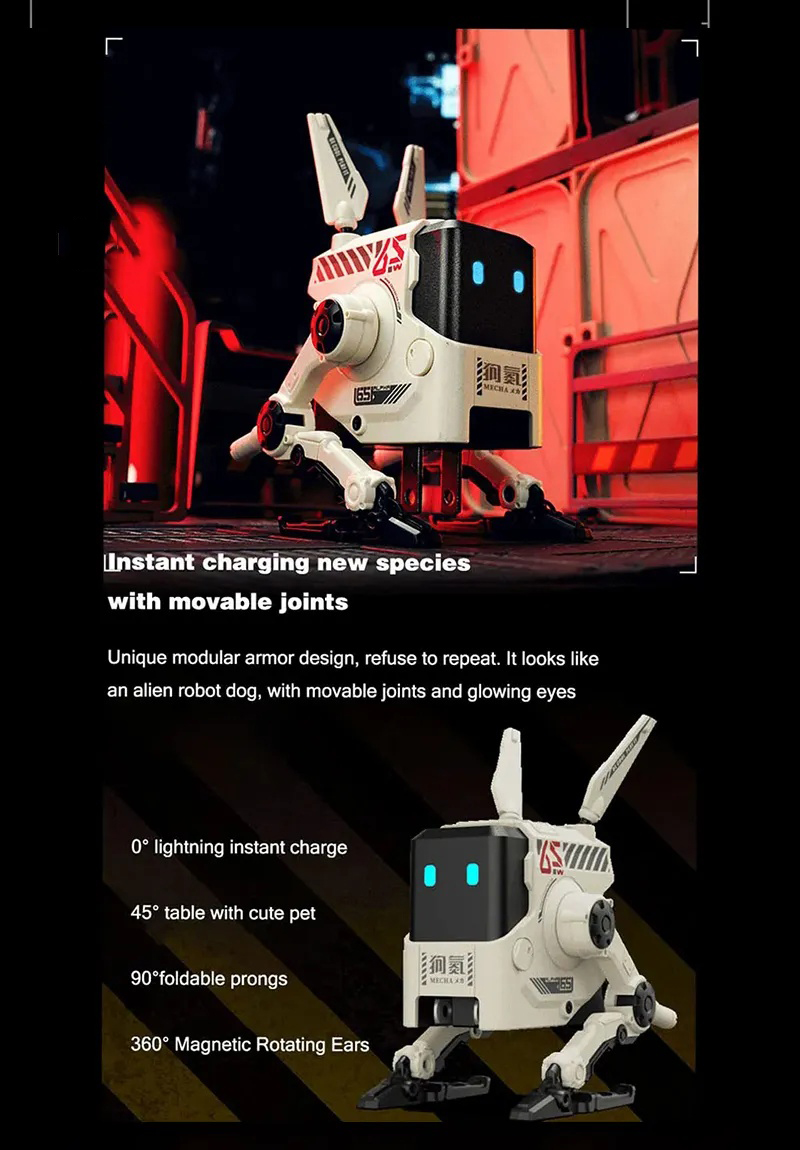 The appearance mechanical dog design, the joints can be moved, and the eyes are glowing. When you do not use it, it is a trendy ornament.