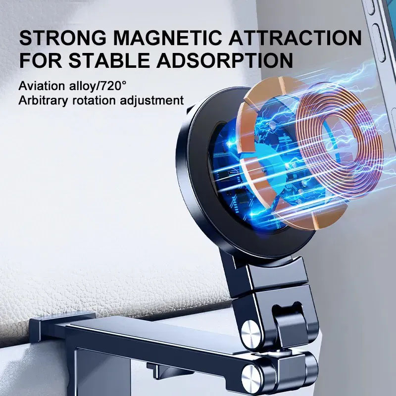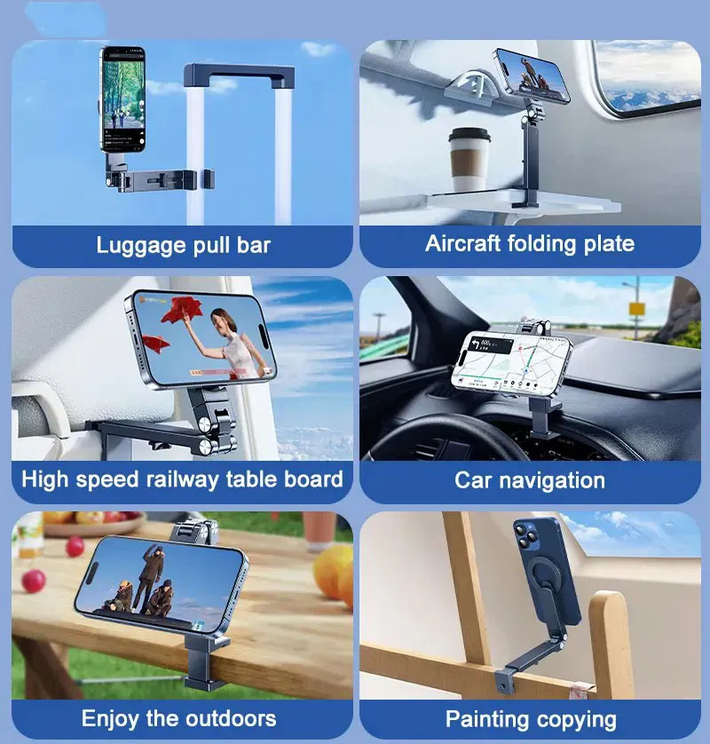 Aluminum Alloy Magnetic Phone Stand: MagSafe-Compatible, Portable and Foldable 360-Degree Rotating Clip for Travel, Perfect for High-Speed Rail, Airplanes, Seat Backs, and Luggage Handles. The Ultimate On-the-Go Accessory