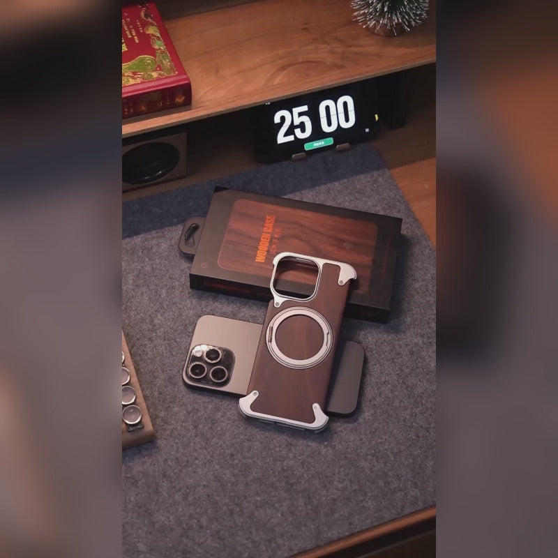 Walnut solid wood iphone case, frameless half-covered metal wood new design, ultra-thin case with heat sink, magnetic stand drop protection cover